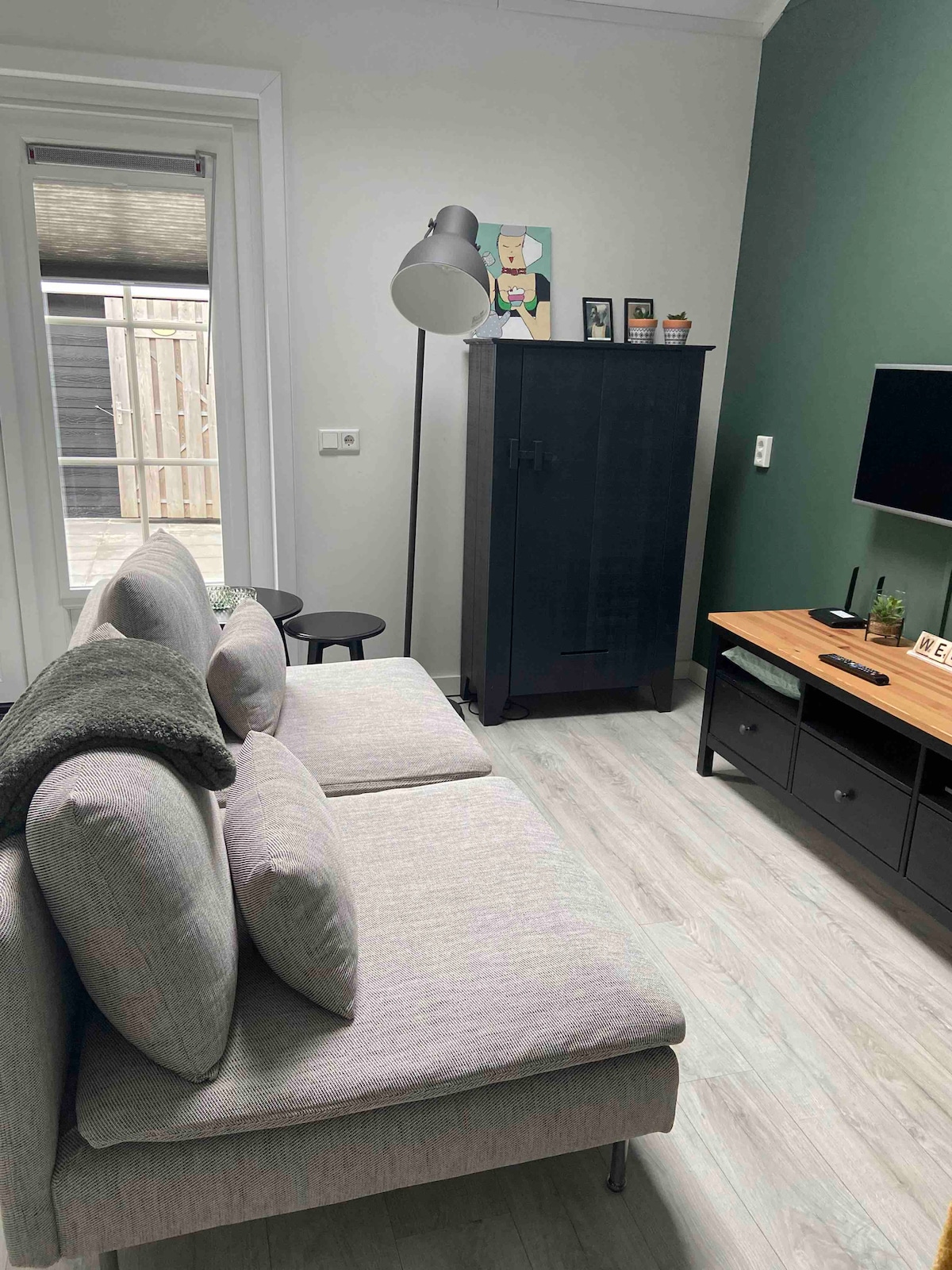 Vakantiewoning (juli 2017)van 35 m2. De woning heeft 1 slaapkamer met opgemaakte boxspring. 2 x 1 persoonsdekbedden. Er is ook een televisie in de slaapkamer. Een luxe badkamer en apart toilet. De keuken is volledig ingericht met vaatwasmachine, oven-magnetron, koffiezetapparaat en waterkoker. Wasmachine is aanwezig. In de woning heeft u gratis WiFi. Ideaal voor 2 personen en eventueel een klein kindje. Toeristenbelasting dient ter plaatse te worden voldaan. 2,40 euro per persoon per nacht.
