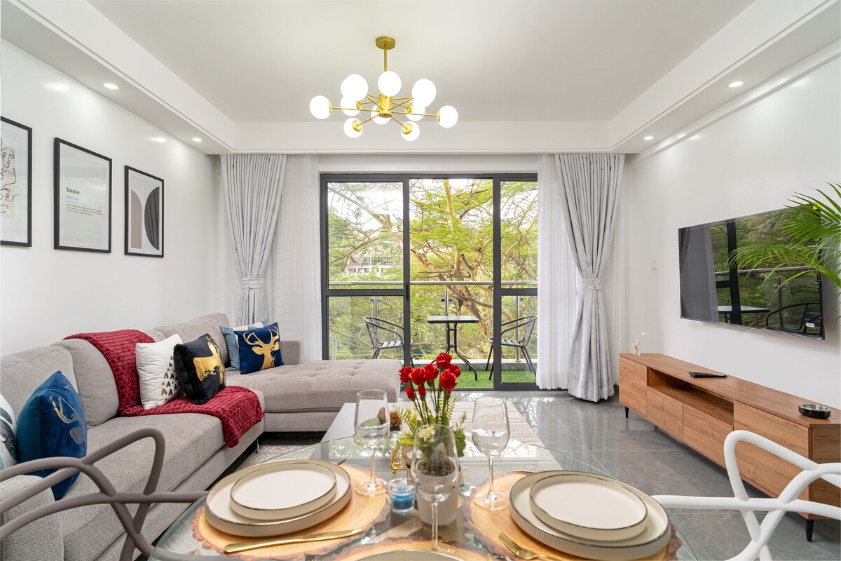 A ☞<1 minuto a pie del centro comercial The Junction Mall, ubicación muy conveniente: cafeterías, restaurantes, cine, supermercado y más. Televisión inteligente de☞ 75 pulgadas: HBO, Netflix, Hulu, Prime y mucho más incluidos ☞Generador de energía de respaldo para luces, muy importante en Nairobi para evitar apagones. ☞ Departamento muy espacioso de nueva construcción y amueblado ☞ Se permiten visitantes (consulta las reglas de la casa) ☞ Cocina totalmente equipada. Barrio ☞ seguro