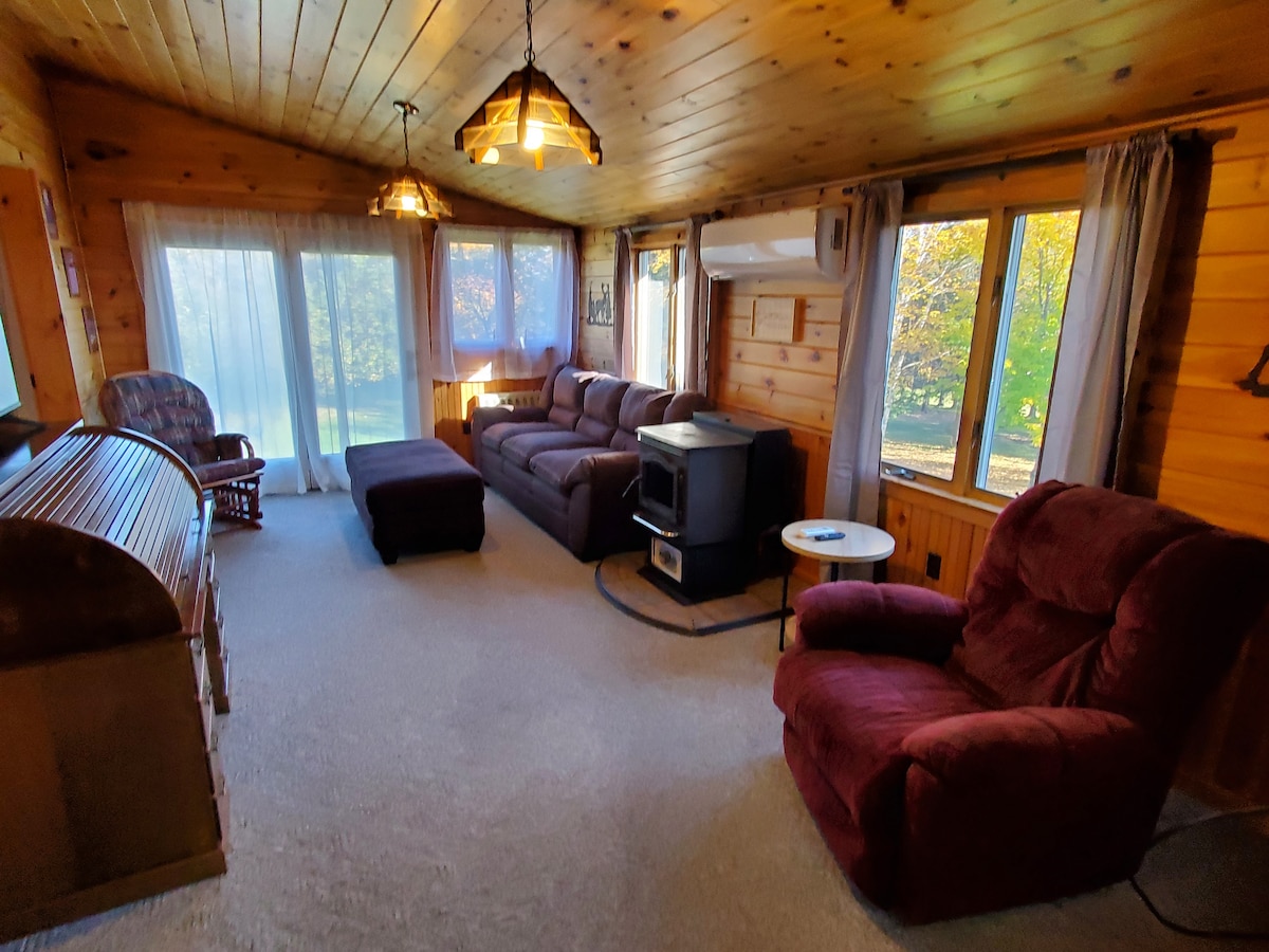 This quaint cabin is just what you need for a getaway! With tongue and groove pine throughout, the cabin is cozy and comfortable. This is a fully winterized cabin, perfect for all you snowmobile enthusiasts! There is plenty of parking for snowmobile trailers and the cabin has direct access to snowmobile and ATV trails. Plan on being here in the summer? There is lake access across the street. Have a boat? Bring it-we provide free dock space!