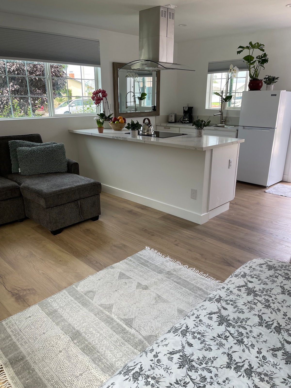 Una suite de invitados de nuevo estudio de construcción diseñada pensando en la comodidad y conveniencia de los huéspedes. Los techos abovedados y los tragaluces crean luz natural a la vez que proporcionan una sensación espaciosa y abierta a la casa. El espacio cuenta con una entrada privada, una cocina totalmente equipada, muebles elegantes y servicios como Wi-Fi, Smart TV y un espacio privado al aire libre. La casita es un refugio acogedor para los viajeros que buscan un lugar asequible y cómodo para alojarse mientras visitan Los Ángeles. Cargador para vehículos eléctricos disponible 🔌
