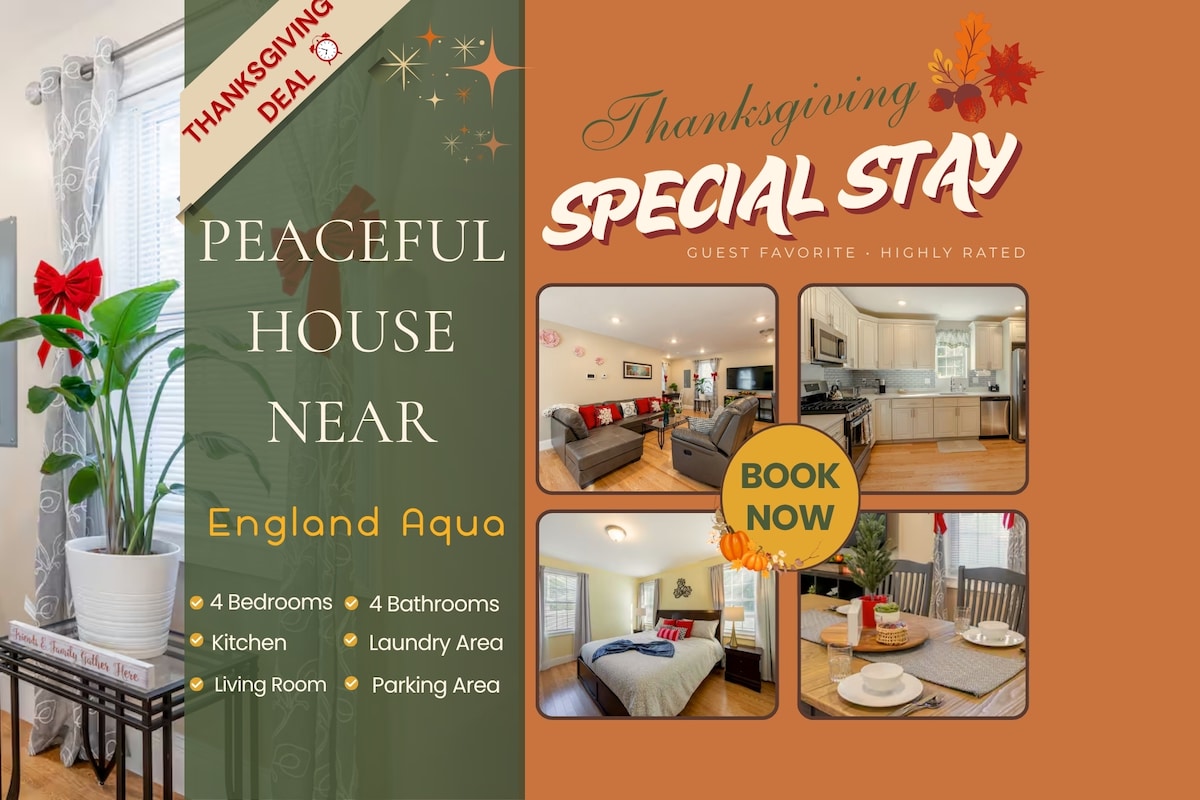 284 - Casa tranquila de 4 dormitorios en Boston cerca de England Aqua