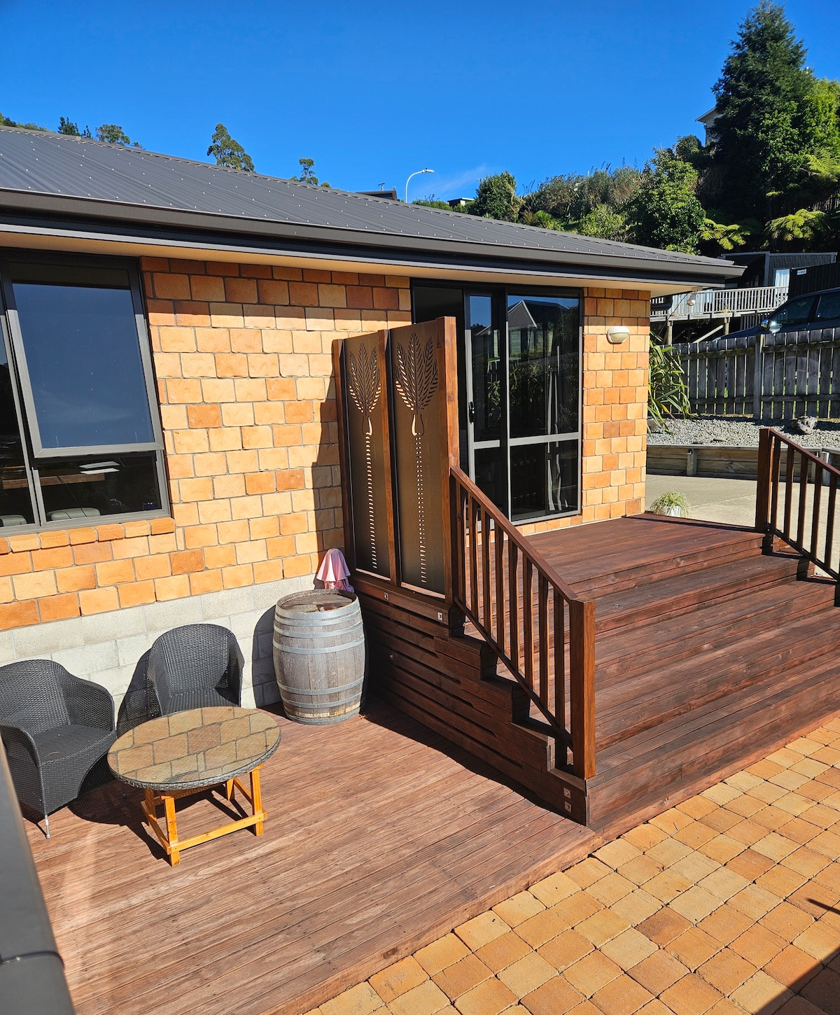 Esta unidad de planta baja renovada, luminosa y espaciosa ofrece el ambiente perfecto, cómodo y relajado. Ofrecemos una barbacoa para cocinar con un microondas para calentar. A 10 minutos a pie de la ciudad (restaurantes y bares), cerca de transbordadores, pistas para caminar/en bicicleta y ambos puertos deportivos, también un par de lugares para nadar. Te despertarás con los sonidos de las aves autóctonas. Picton, la puerta de entrada a los sonidos de Marlborough, los proveedores de aventura y paisajes se encuentran en Picton Foreshore. Esta pequeña ciudad tiene algo para todos los gustos.