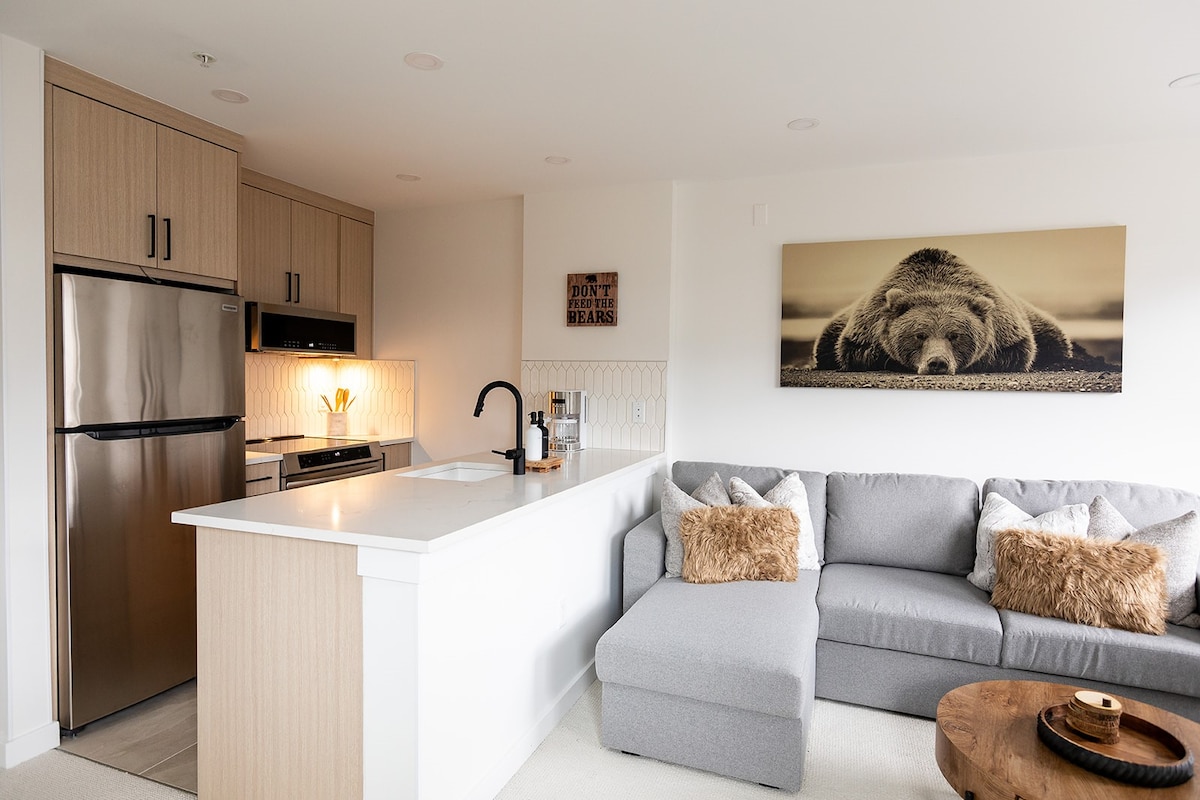 ¡Bienvenido a tu paraíso vacacional en Whistler! Nuestro estudio recién renovado es la mezcla perfecta de diseño moderno y comodidad acogedora, lo que lo convierte en un refugio de ensueño para dos. Los interiores frescos y luminosos reflejan nuestra dedicación al estilo y la limpieza, creando un ambiente relajante inmejorable. Si buscas emocionantes pistas de esquí, experiencias gastronómicas exquisitas o una vibrante vida nocturna, esta es la base ideal para tus escapadas a Whistler. Sumérgete en el ambiente de montaña, donde la aventura y la relajación coexisten.