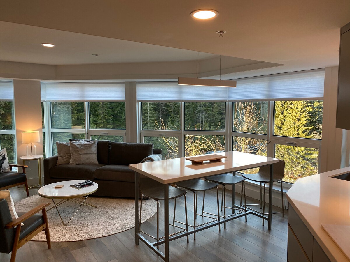 Te damos la bienvenida a tu oasis de montaña. ¡A 1 minuto a pie del ascensor Blackcomb! Nuestro moderno condominio es un dormitorio luminoso y espacioso con ventanas envolventes para unas vistas perfectas a las montañas y a los árboles. ¡Mira hacia arriba la montaña Whistler mientras bebes café desde la mesa de tu cocina! La suite lo tiene todo: - Cama tamaño king Sofá cama. - cocina completamente - bañera de hidromasaje - Keurig. - Parlante Bose - Aire acondicionado central - actualizado en julio de 2025. El edificio tiene un gimnasio, lavandería, piscina y bañera de hidromasaje al aire libre.