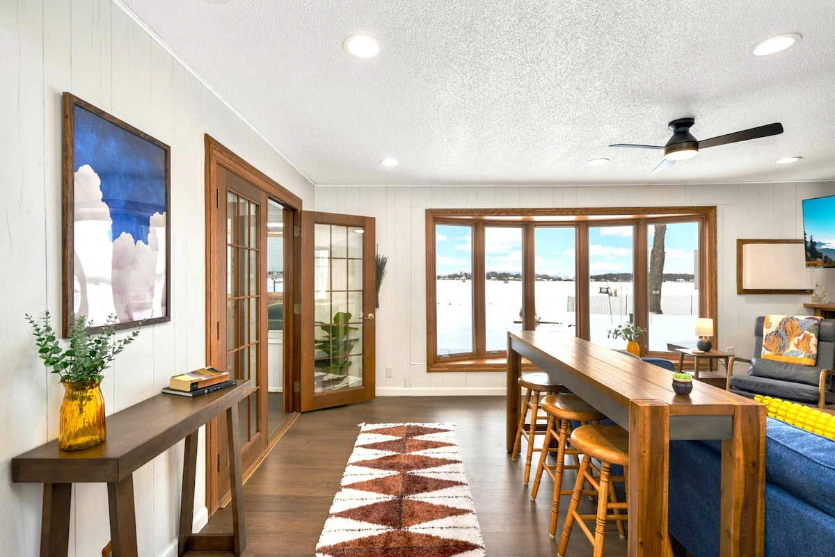 Café ☕ matutino con amanecer sobre el agua. Disfruta de la barra de café con café de goteo, Keurig y selección de té. 🎣 🛶 Pesca en muelle, surf de remo, kayak, trae o alquila un barco 🔥Parrillas al aire libre, reuniones con fogatas 🏡 Entra para disfrutar de chimeneas acogedoras, juegos o películas en el Roku ¡🎆 Espectaculares vistas de los fuegos artificiales del 4 de julio! ❄️ Winter Wonderland: el paraíso de los pescadores de hielo y motos de nieve A 📍5 minutos del centro de Forest Lake, a 30 minutos de la Feria Estatal de Mn y Twin Cities