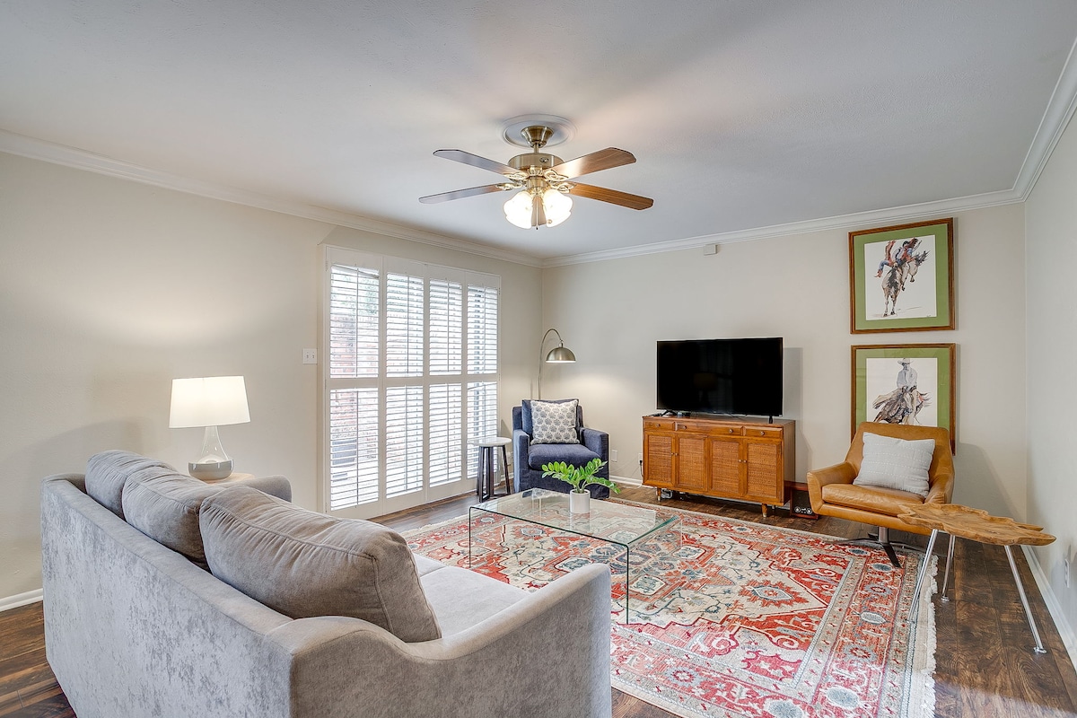 Una casa adosada de dos pisos, espaciosa y bellamente decorada, con comodidades modernas, ubicada en el corazón del Distrito Cultural de Fort Worth. La casa adosada cuenta con un dormitorio principal en la planta superior con una cama tamaño king, un televisor inteligente grande, un baño privado con tocador y una gran ducha a ras de suelo. Hay dos dormitorios adicionales arriba con un baño compartido para que duerman cómodamente seis adultos. ¡La propiedad se encuentra a poca distancia a pie del estadio Dickies Arena y de muchas otras atracciones!