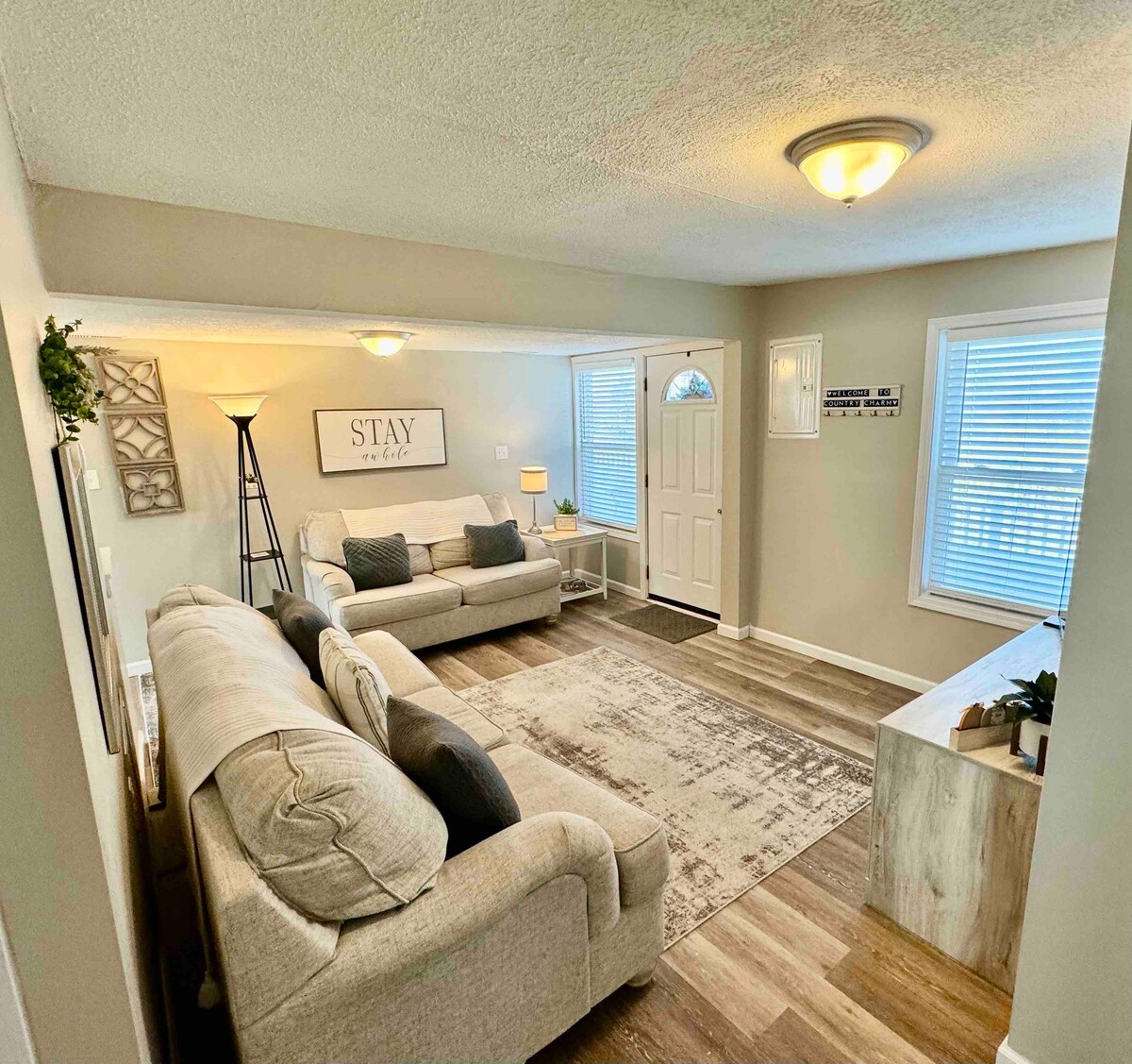 Charming cottage has been completely renovated! Bright, neutral décor with amenities! Free wi-fi, cable tv, coffee maker & fully stocked kitchen if you choose to cook! One bathroom w a small shower. Cute & quaint but some un even floors that will be repaired winter 2024. Located less than 8 mins from ARK Encounter & less than 5 mins to Williamstown Lake. Easily accessible to Williamtown Lake, Creation Museum, Ky Horse Park, Newport Aquarium, as well as multiple dining & shopping venues!