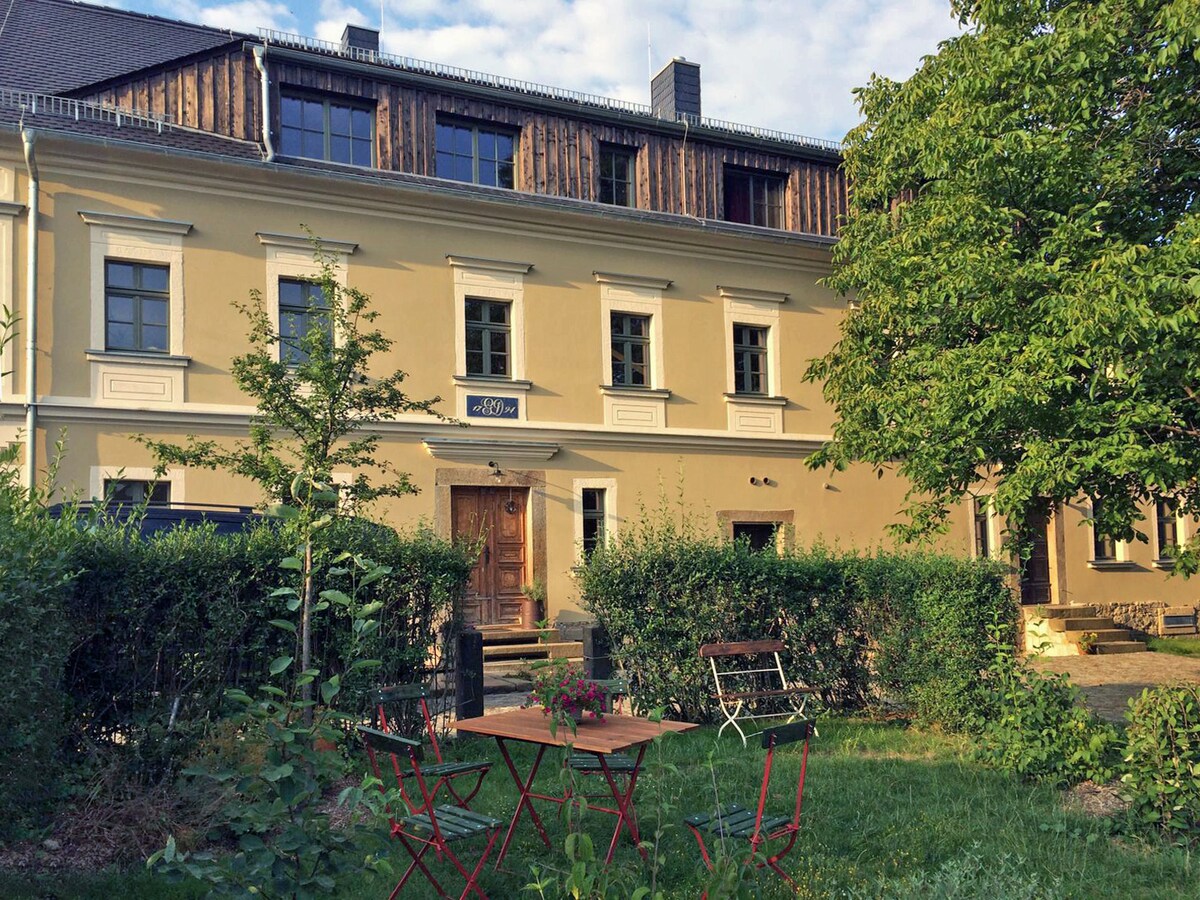 Apartamento en el piso superior de la casa, ubicación tranquila, gran terraza con excelentes vistas para relajarse. A 15 minutos en auto del parque nacional o caminatas directamente desde aquí. Cosas que hacer en Sebnitz: centro deportivo y de ocio (a 1 km), piscinas al aire libre, baño Kräuter-Vitalbad, parque prehistórico, Casa de las flores del arte alemán. Punto de partida popular para caminatas (también guiadas) o recorridos en bicicleta en la Suiza sajona-bohemia. Buenas tiendas, Dresde a 50 km, Pirna a 36 km.