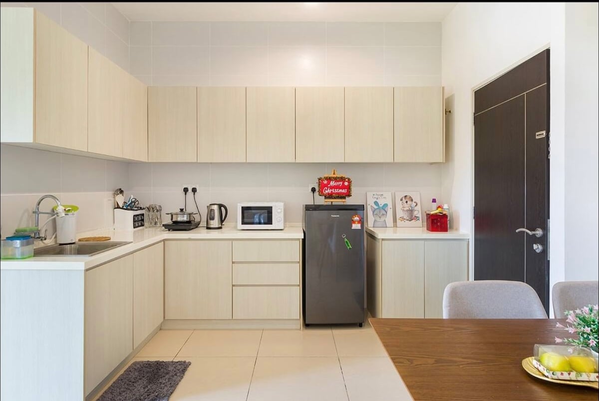 La propiedad se encuentra en Windmill Upon Hills, Genting Highlands. Todo el apartamento para ti y tu familia con vistas verdes a la montaña y el viento fresco cuenta con totalmente amueblado. Cocina de pleno funcionamiento con cocina de inducción, purificador de agua, arrocera, vajilla, utensilios de cocina, hervidor eléctrico, nevera y microondas. También se proporcionaron condimentos básicos como azúcar, sal y condimentos. Lavadora y secadora, secador de pelo. 1 estacionamiento privado cubierto gratuito.