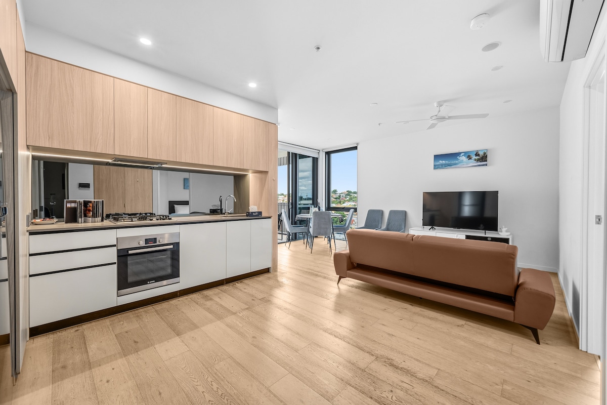Te damos la bienvenida a nuestro elegante apartamento de 2 dormitorios y 2 baños en un centro vacacional de cinco estrellas en Hamilton, Brisbane. Disfruta de las vistas al jardín y a la barbacoa, una piscina, estacionamiento gratuito, parques infantiles y un paseo por el río. A pocos pasos de cafés, tiendas, cines y mercados, y a solo 10 minutos del aeropuerto. A minutos del distrito financiero y las principales atracciones, perfecto para una escapada corta o una estancia prolongada con instalaciones premium.