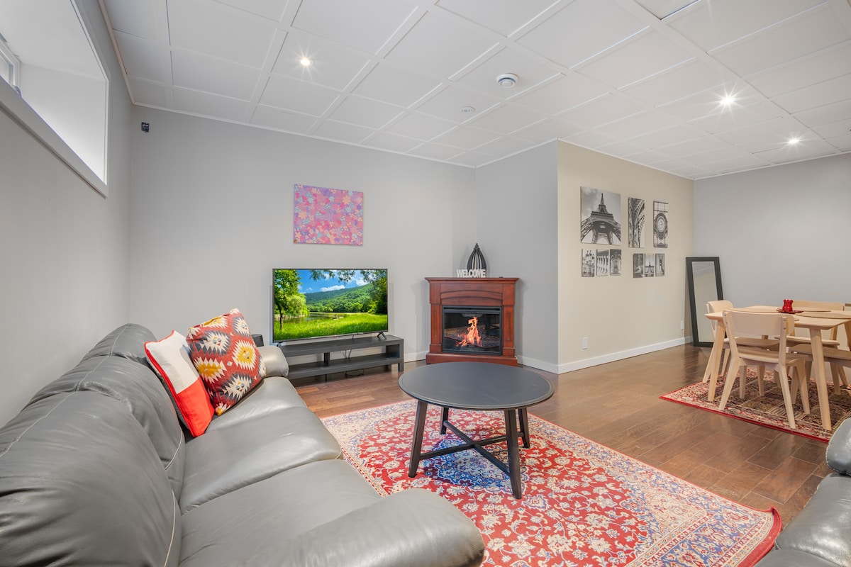 Relájate con toda la familia en esta tranquila y privada suite en el sótano. Disfruta de la comodidad de tu propia entrada independiente, una acogedora sala de estar, un dormitorio con una cama tamaño queen, lavandería en suite y vistas a un patio trasero bellamente ajardinado. La cocina pequeña está equipada con una placa de inducción, microondas y mininevera, perfecta para preparar comidas ligeras durante tu estancia. Ideal para viajeros solitarios, parejas o grupos pequeños: tiene capacidad para 4 personas.