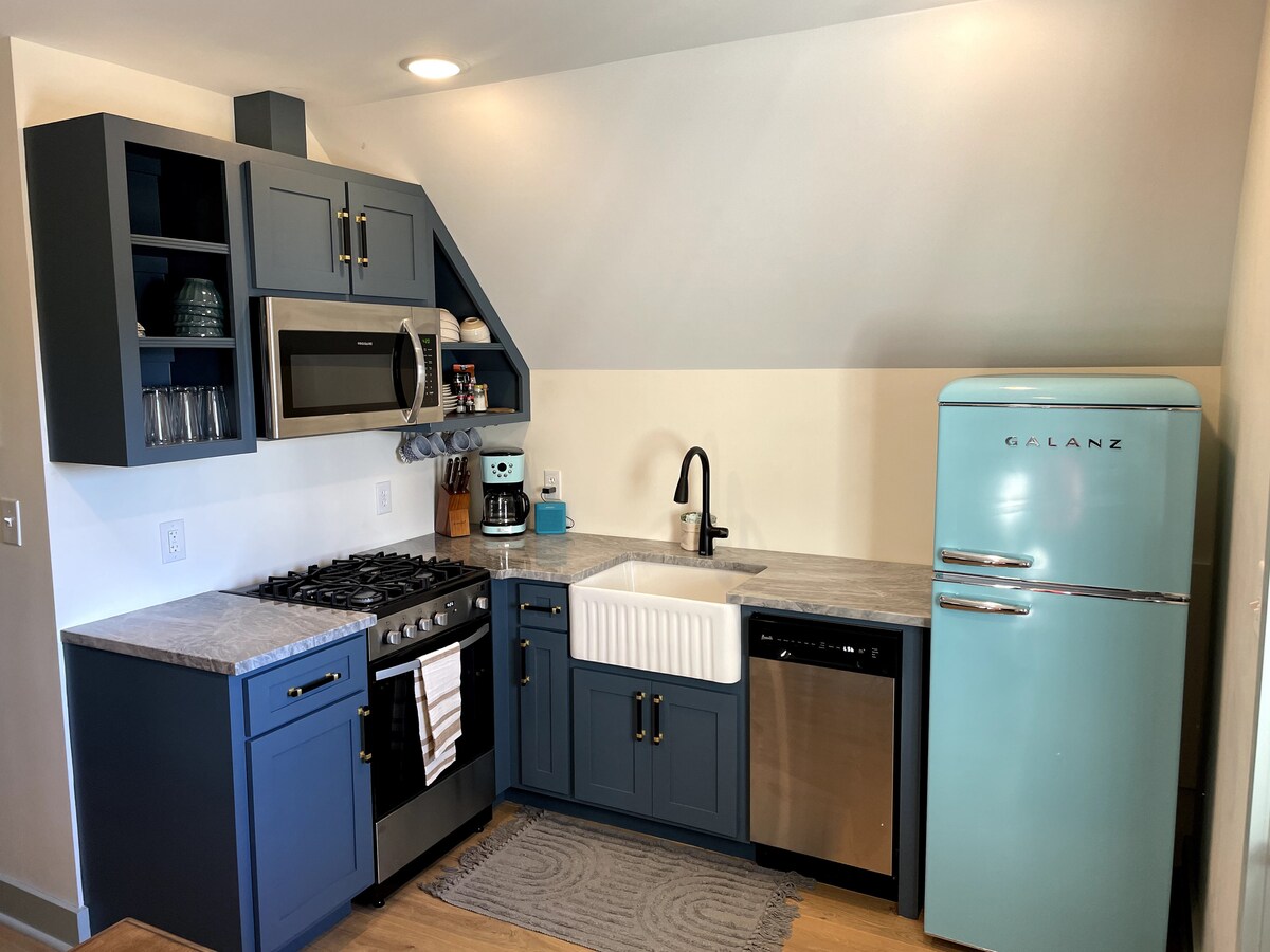 This charming one bedroom apartment is centrally located on Broad Street, just a few blocks from all the shops and restaurants on Front Street. The bedroom has 1 queen bed and the living area has a futon for additional guests or children. A fully stocked kitchen is convenient if you choose to cook and we have a large private parking lot behind the building.This is a perfect spot to stay while enjoying this beautiful historic town.