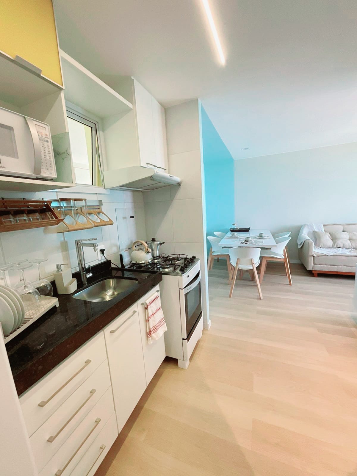 Apartamento de 50 m², con 1 dormitorio, sala de estar, cocina y balcón, frente al mar y la famosa playa de Ponta Negra. Se trata de un piso extremadamente nuevo, cómodo y acogedor, equipado con aire acondicionado, Smartv de 50 pulgadas con acceso a Youtube y Netflix, con TV por cable e internet, además de tener una hermosa vista al mar y a la colina de Careca. La cocina está equipada con vajilla, cubiertos y utensilios varios, nevera inoxidable, cocina, microondas, cafetera y mesa de comedor.