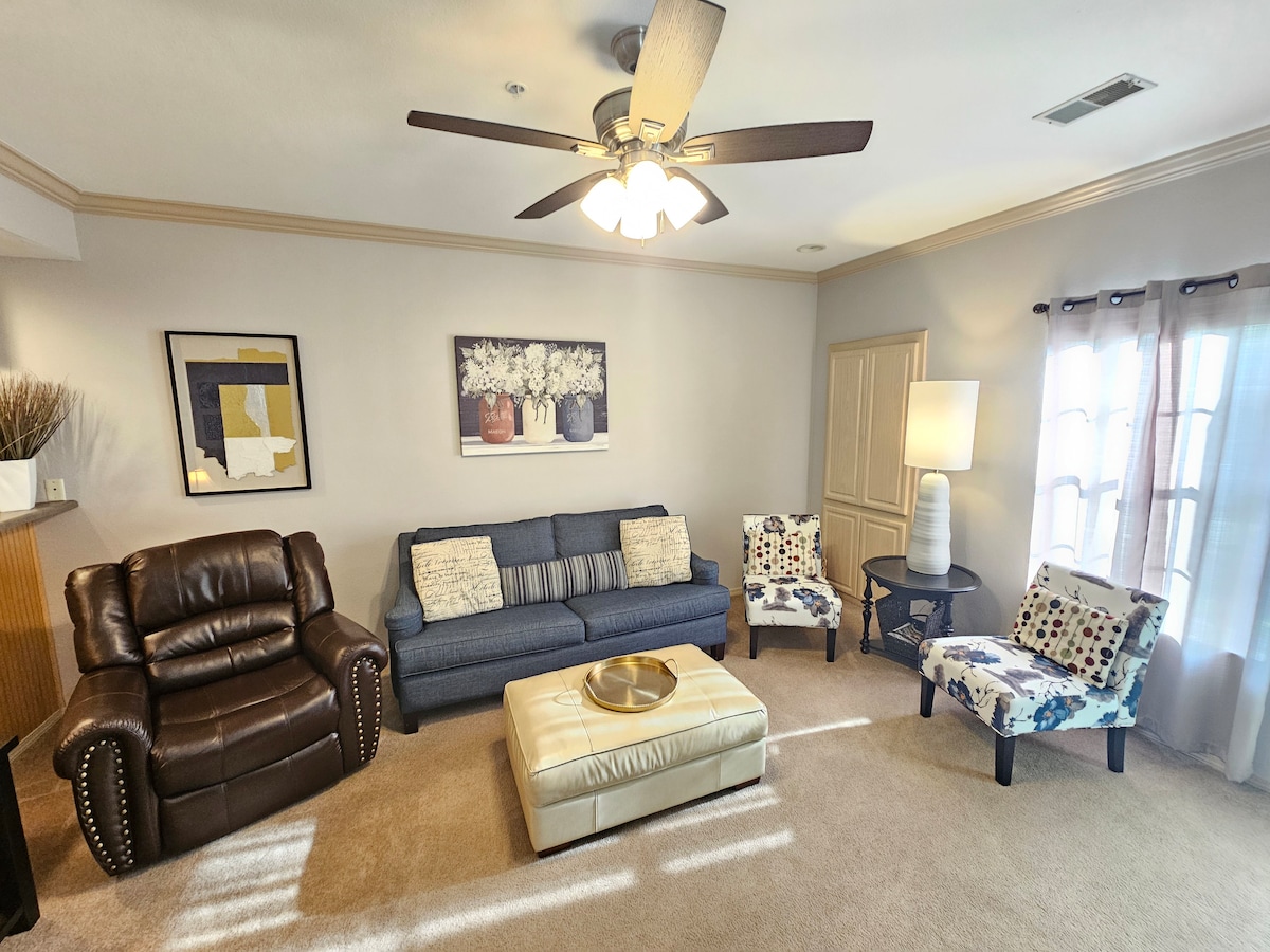 ¡Este apartamento es para ti y para tu pareja! ¡Tómate un tiempo para relajarte y pasar un tiempo muy necesario juntos! A solo 6 millas de Silver Dollar City. Justo en el corazón de la hermosa Branson, Missouri, esta acogedora suite King es perfecta para escapar unos días. Con wifi gratuito, Chrome Cast, bañera de hidromasaje y lavadora y secadora en el alojamiento, ¡puedes pasar tanto o tan poco tiempo dentro como desees! Con un registro de entrada y salida fácil, té/café gratis y sin escaleras, ¡no puede ser mejor!