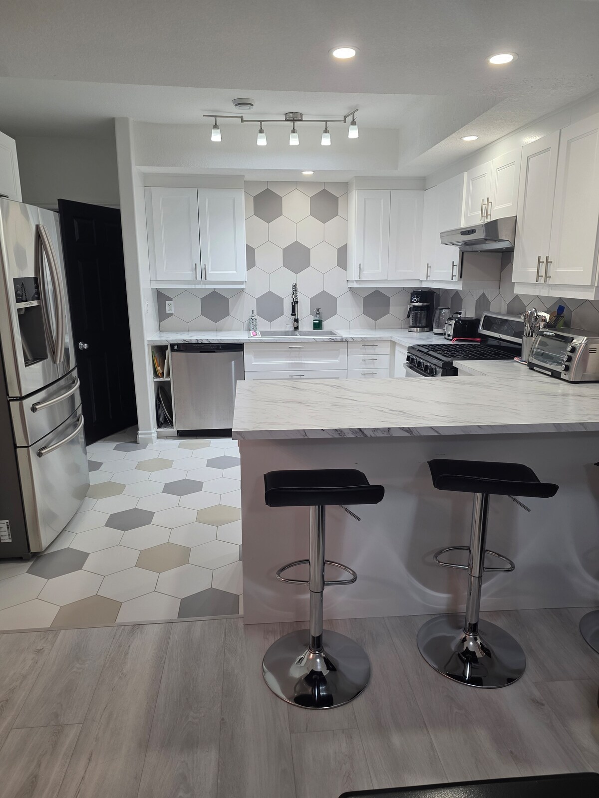 An entire home with a beautiful backyard, patio furniture, and a bbq. This house is open concept with 2 bedrooms, office, 2 full baths, fully equipped kitchen and pull out sectional. The basement is perfect for working out with cool temperature tv, weights, yoga mat, exercise bike, and a full bathroom. A perfect location, close to the hospital, grocery stores and shopping. Please note that if the house requires additional cleaning/rules are not followed, a fee of $200 will be charged