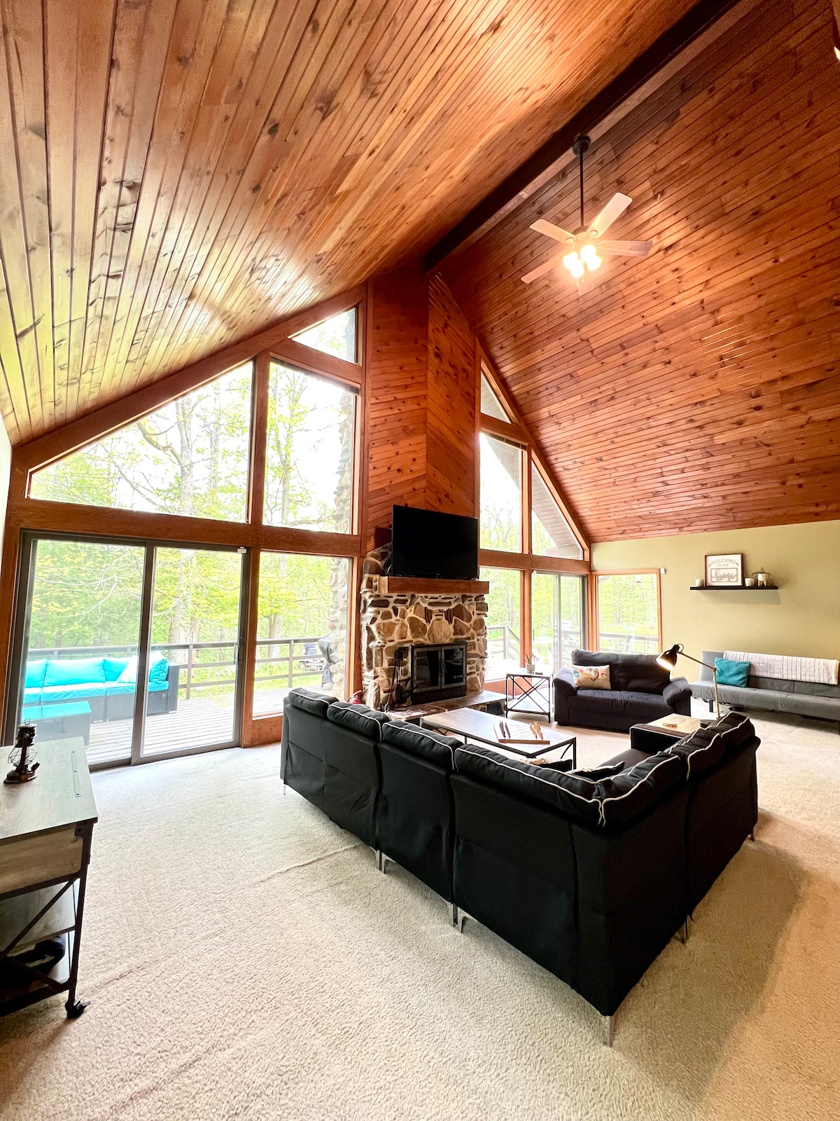 ESCÁPATE a la PAZ y la NATURALEZA. Vida limpia y espaciosa en una península rodeada por un hermoso lago privado hecho por el hombre. Impresionantes vistas, increíbles sonidos de la naturaleza, gran sala, techos altos, chimeneas, terraza trasera, sección al aire libre. EXCELENTE wifi, espacio de oficina, SALA DE JUGUETES, sala multimedia y sala de estar. Lavadora/secadora, aire acondicionado central, Keurig, 2 televisores de pantalla plana, Roku, Sonos Music, bicicletas, corn hole, air hockey. Disfruta de un descanso del resto del mundo. A medio camino entre Nueva York y Chicago. ¡TODO lo que necesitas!