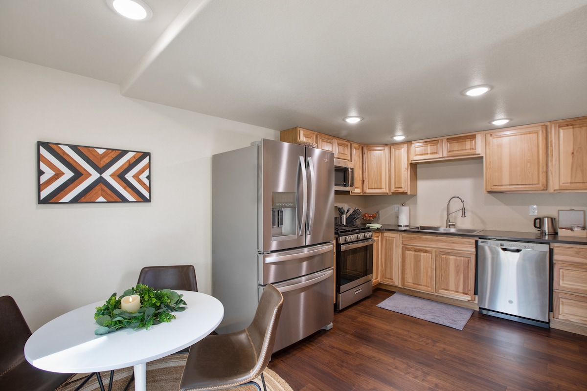 Con un río en el patio trasero junto a la bañera de hidromasaje privada y sauna, ¿qué más podrías necesitar? Si te encanta ver la vida silvestre local, escuchar el sonido del arroyo y relajarte en un lujoso patio trasero que es perfecto para todas las estaciones, ¡entonces RiverHouse South by Forest & Peak Retreats es para ti! Disfruta de todas las comodidades de una cocina equipada con un toque de curador, toallero con calefacción, chimenea de gas con control remoto, remodelación de arriba a abajo. ¡Reserva RiverHouse South, por Forest & Peak Retreats, hoy mismo!