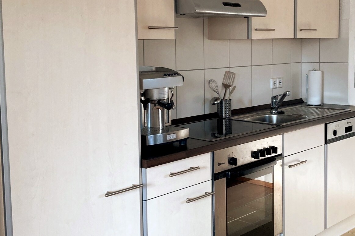 Top moderne, voll ausgestattete 3 Zimmer Ferienwohnung – super zentral und alles fußläufig! Für Gruppen, Familien, Handwerker. 90 m², mit 3 Schlafzimmern, Handyladekabel am Bett, 2× 50-Zoll-Smart-TV, Waschmaschine, Trockner, Gym kostenlos gemeinschaftlich. Kurzzeit ab 2 Nächten oder Langzeit über mehrere Monate mit voll ausgestatteter Küche. Beste zentrale Lage, Sie erreichen alles bequem ohne Auto: Bäckereien direkt nebenan, Discounter, Shopping, Restaurants, Cafés, Bars, Kultur u.v.m.