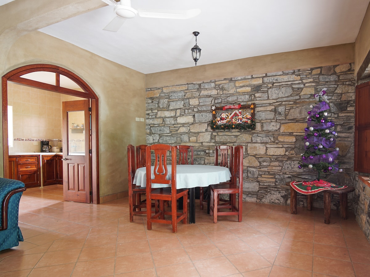 Preciosa Casa espaciosa, limpia , totalmente equipada, excelente ubicación, todos los servicios, Xilitla centro esta caminado. La Suit tiene todo para tu confort cama matrimonial wifi ventilación baño. La cocina tiene agua café y té de cortesía, desayuno continental siempre. Comedor al aire libre, espacio de trabajo mesas y surrealismo y arte inspirador. Estacionamiento. Visita una noche o quédate a disfrutar de Xilitla!
