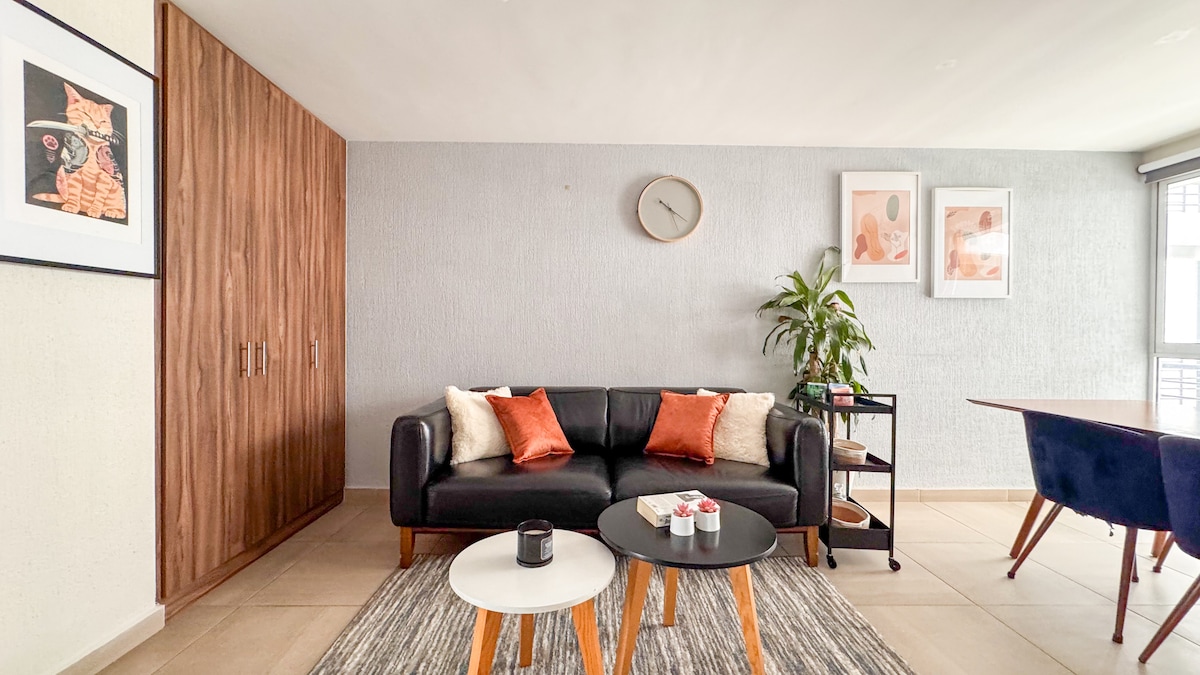 Disfruta de Ciudad de México desde este elegante loft en la moderna Colonia Juárez. Perfectamente ubicado, a poca distancia a pie de Roma Norte, Condesa, Zona Rosa, Polanco y Reforma, es ideal para parejas, amigos, familias y viajeros de negocios. Disfruta de una espaciosa cocina de planta abierta, sala de estar, comedor y un gran patio. Con seguridad las 24 horas, internet de alta velocidad y fácil acceso al transporte público, explorar la ciudad es muy fácil. ¡Haz de este tu cómodo y práctico hogar en la vibrante Ciudad de México!