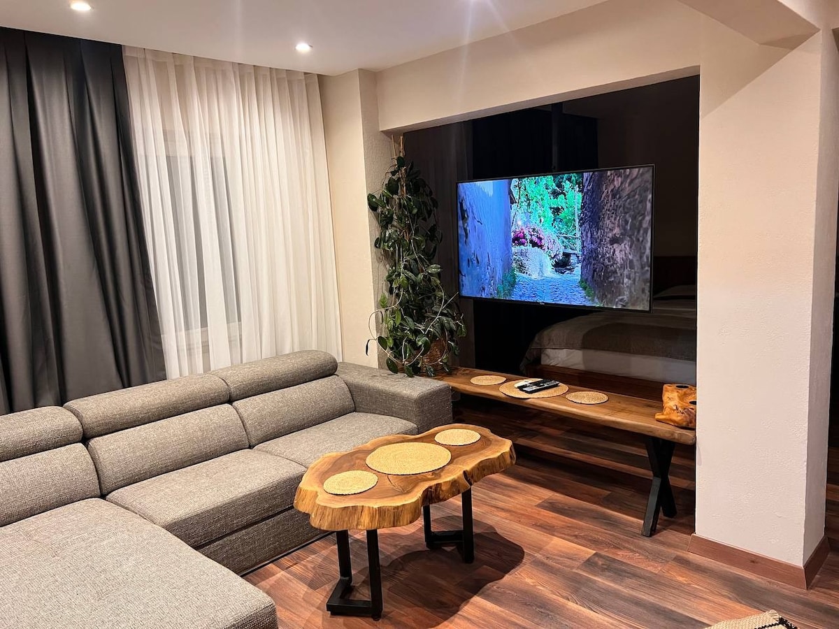 Te sentirás como en casa con la cálida energía de nuestro departamento. Puedes hacer que tu estancia sea tranquila en este apartamento, donde prestamos mucha atención a la limpieza y la higiene. Disfruta de una estancia sencilla y acogedora en este lugar céntrico y tranquilo. Las horas tranquilas te esperan en nuestro balcón con una vista de la naturaleza exuberante y escuchar los sonidos de los pájaros. Nota al pie Cada lugar tocado por manos humanas se desinfecta meticulosamente.
