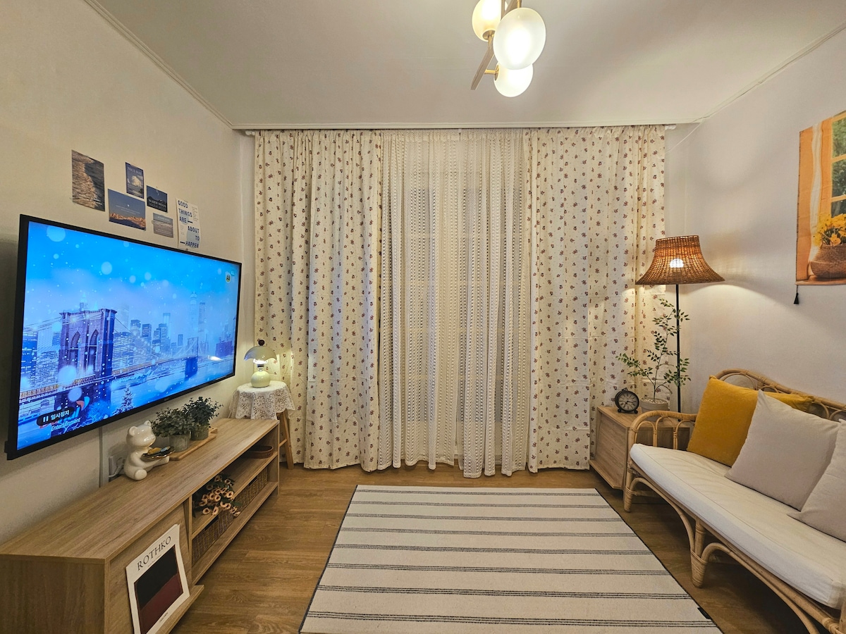 💚 Oneul-Haru es una propiedad con un ambiente cálido y vintage. Ofrecemos camas y ropa de cama cómodas, y estamos haciendo una desinfección regular. 7% de descuento en 😄 7 días o más 10% de descuento por 😄 28 días o más Se puede llegar a 🚍 Hongdae, Yeouido y Gangnam en 20-30 minutos. Cerca de las estaciones de Mokdong/Yeouido/DMC para disfrutar 🎤 del K-pop. Está cerca del aeropuerto de ✈ Gimpo, por lo que es conveniente ir a "Busan" y "Isla Jeju". Hay servicios básicos como Olive Young, Daiso, tiendas de conveniencia, cafeterías y restaurantes de comida rápida alrededor de🛒 nuestro alojamiento. 🌳 Está cerca de Yongwangsan Neighborhood Park, Mokdong Kaebi Market y restaurantes, y recomendamos restaurantes locales para los huéspedes que hayan reservado nuestro alojamiento. 🚄 Aeropuerto Internacional de Incheon a 1 hora Aeropuerto de 🚄Kimpo a 28 min 🚄 Hongdae a 21 minutos 🚄 Sinchon 21 minutos 🚄 Digital Media City a 9 minutos en auto 🚄 Yeouido: 14 minutos Terminal 🚄 exprés a 28 minutos A 30 minutos de 🚄 Yongsan 🚄 Jongro 35 minutos Estación 🚄 de Seúl a 35 minutos 🚄 Iteawon 38 min.