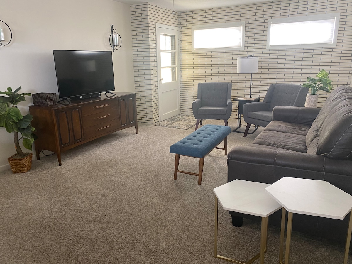 Have fun with the whole family at this stylish place. There’s ample room with 3 bedrooms, 1 1/2 baths, full kitchen, dining and 2 living room areas. If you are looking for covered and protected parking you’ll love the fact that it has 3 stall attached garage. We pride ourselves on having a clean home. The location is great within walking distance of the Memorial Park and new Auquatic center.