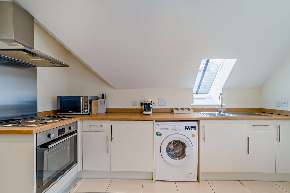 Conversión única de un granero enclavado en un callejón medieval en el corazón de Fairford: salón de planta abierta con una acogedora sala de estar y baño de lujo. Sube la escalera de caracol hasta el dormitorio boutique o relájate en el bonito jardín amurallado de piedra. Estamos al lado de una encantadora posada del siglo XV con una selección de otros pubs cercanos, restaurante italiano, tiendas locales, farmacia, cafeterías y comida para llevar a mano, ¡una base perfecta para explorar esta encantadora parte del mundo!
