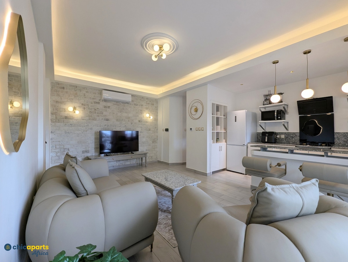Alójese en el corazón de Bastos, cerca de las embajadas y de la antigua sede de la OIM Canadá. Descubra un apartamento luminoso con un amplio salón, cocina equipada, un cómodo dormitorio y un cuarto de baño con agua caliente. Disfrute de una zona de bienestar con hammam, sauna y gimnasio con entrenador (De pago). Seguridad las 24 horas, generador y reserva de agua. Ideal para estancias de trabajo o escapadas románticas.