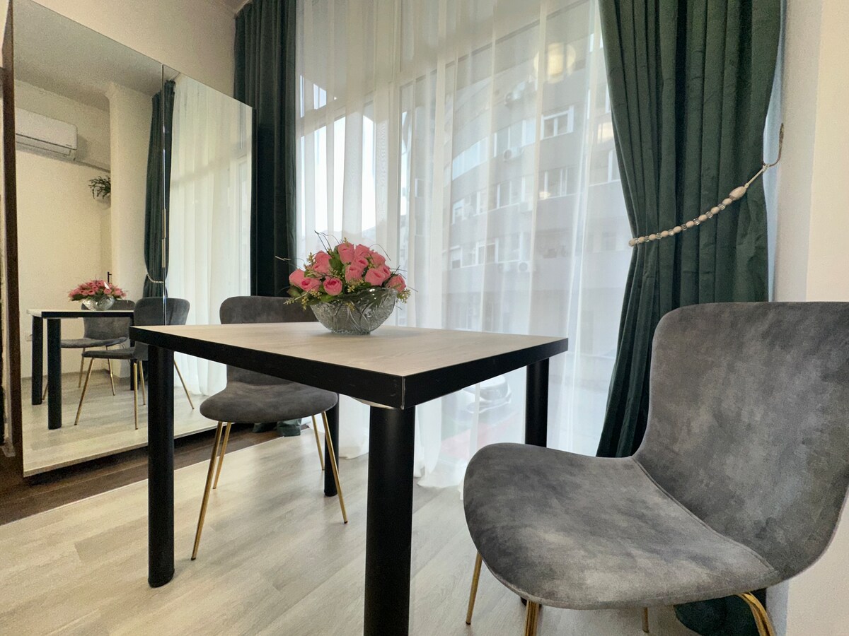 Apartamento moderno y acogedor en el centro de Burgas, a solo 5 minutos (350 m) de la playa. Cuenta con un elegante dormitorio con iluminación suave, un cómodo sofá, TV inteligente, aire acondicionado y wifi rápido. La cocina está totalmente equipada con estufa, microondas, nevera y comedor. El baño es fresco y funcional. Apartamento ubicado cerca de restaurantes, tiendas y transporte, perfecto para una escapada a la playa, una estancia romántica o para trabajar de forma remota.