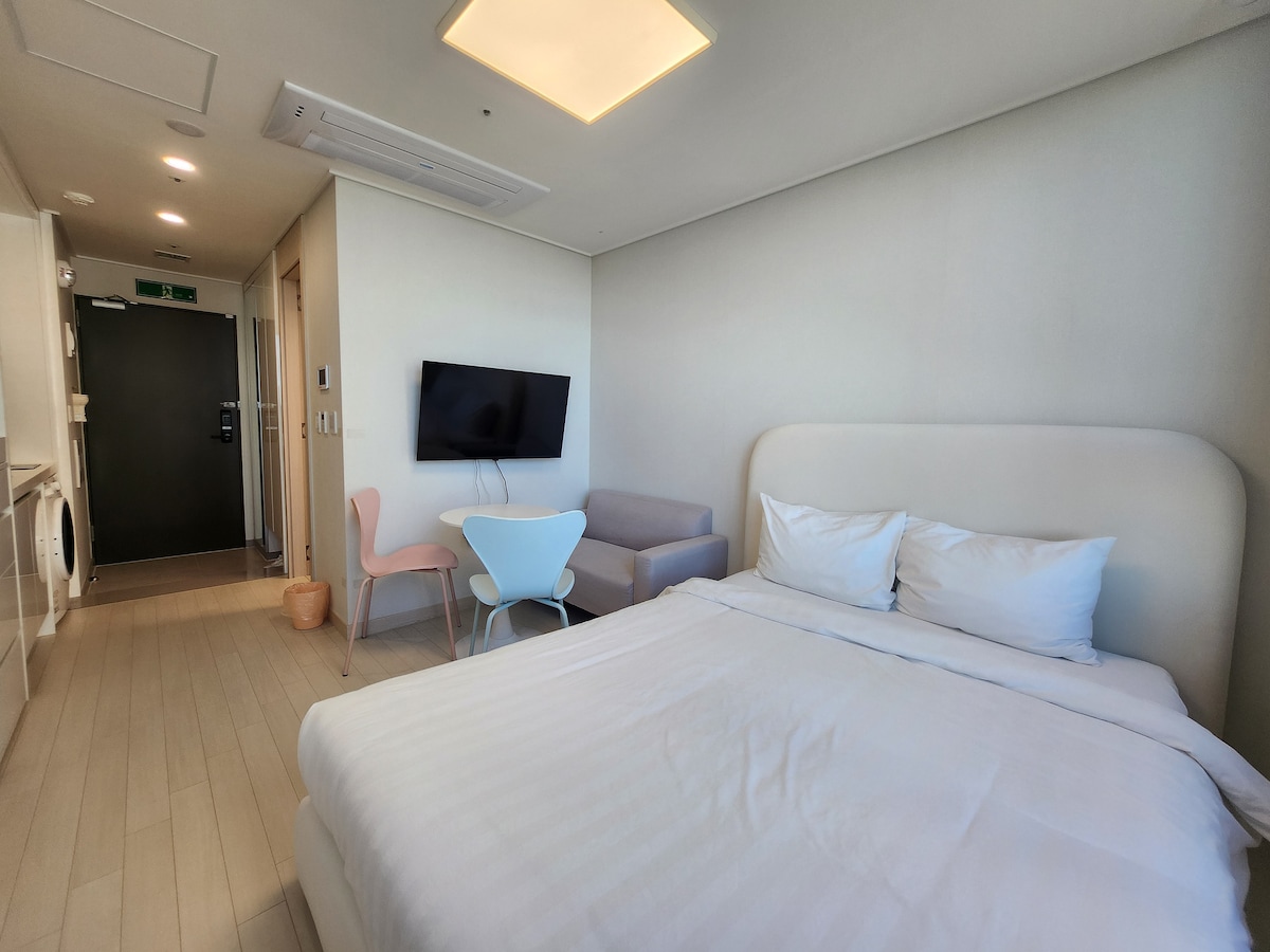 Check-in 4:00 p. m. - Check-out 1:00 p. m. ♥! Habitación - Ropa de cama de hotel para el cuidado de alergias lavada diariamente. - TV Android de 65 pulgadas, canales por cable. - Ve Disney, Tving - Sonido de cine JBL Soundbar de 5.0 canales - Ambiente de café con luces de pie, luces de ambiente, etc. ♥! Cocina - Amplia mesa de comedor. - Se permite cocinar - Copas de vino, copas de soju, abridores. - Tazas de café, vajilla, utensilios de cocina - Cafetera Illy (se proporcionan 2 cápsulas de café) - Sal, pimienta ♥! Terraza - Altavoces de iluminación con sonido tranquilo. - Terraza entera con vista directa al mar. ♥! - - Baño. - champú, acondicionador, gel de baño, etc. ♥︎ Estacionamiento subterráneo (gratuito) ♥︎ Llegada anticipada, salida tardía (consulta por adelantado)