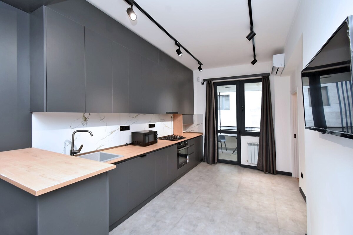 Elegante apartamento de 2 habitaciones en un tranquilo distrito de la ciudad, perfecto para relajarse después de un día ajetreado. Luminoso y moderno con grandes ventanales, acogedora sala de estar, cama cómoda, escritorio, TV de pantalla plana y lavadora. La cocina está totalmente equipada con lavavajillas, cafetera y todo lo esencial. Ubicado en un edificio nuevo y tranquilo a pocos pasos del transporte público y de un gran supermercado. Ideal tanto para estadías cortas como largas, ¡la comodidad, el estilo y la comodidad te esperan!