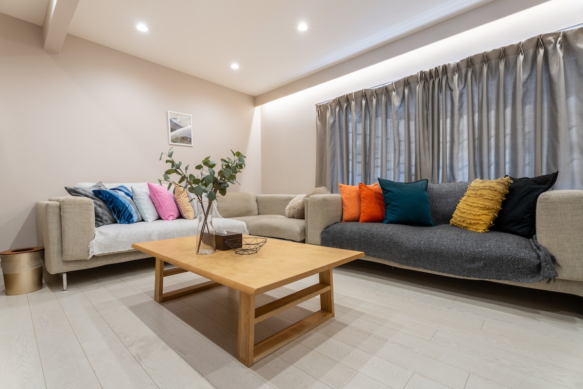 * No Airbnb service fee * High-speed WiFi, Chromecast * Smart locks for self-check-in * Well-equipped kitchen * Family-friendly amenitiesーBaby crib, Booster seat dining, Kids dinnerware set, DVDs, Games & Toys * A/C & heating in all rooms etc. ** Nearest station Juso Sta. ... 7 min walk (flat road) ** Access Kansai International Airport (KIX) ... about 90 min by train Shin-Osaka Sta. ... 8 min by train Kyoto ... about 40 min by train *No transfer Kobe ... about 25 min by train *No transfer