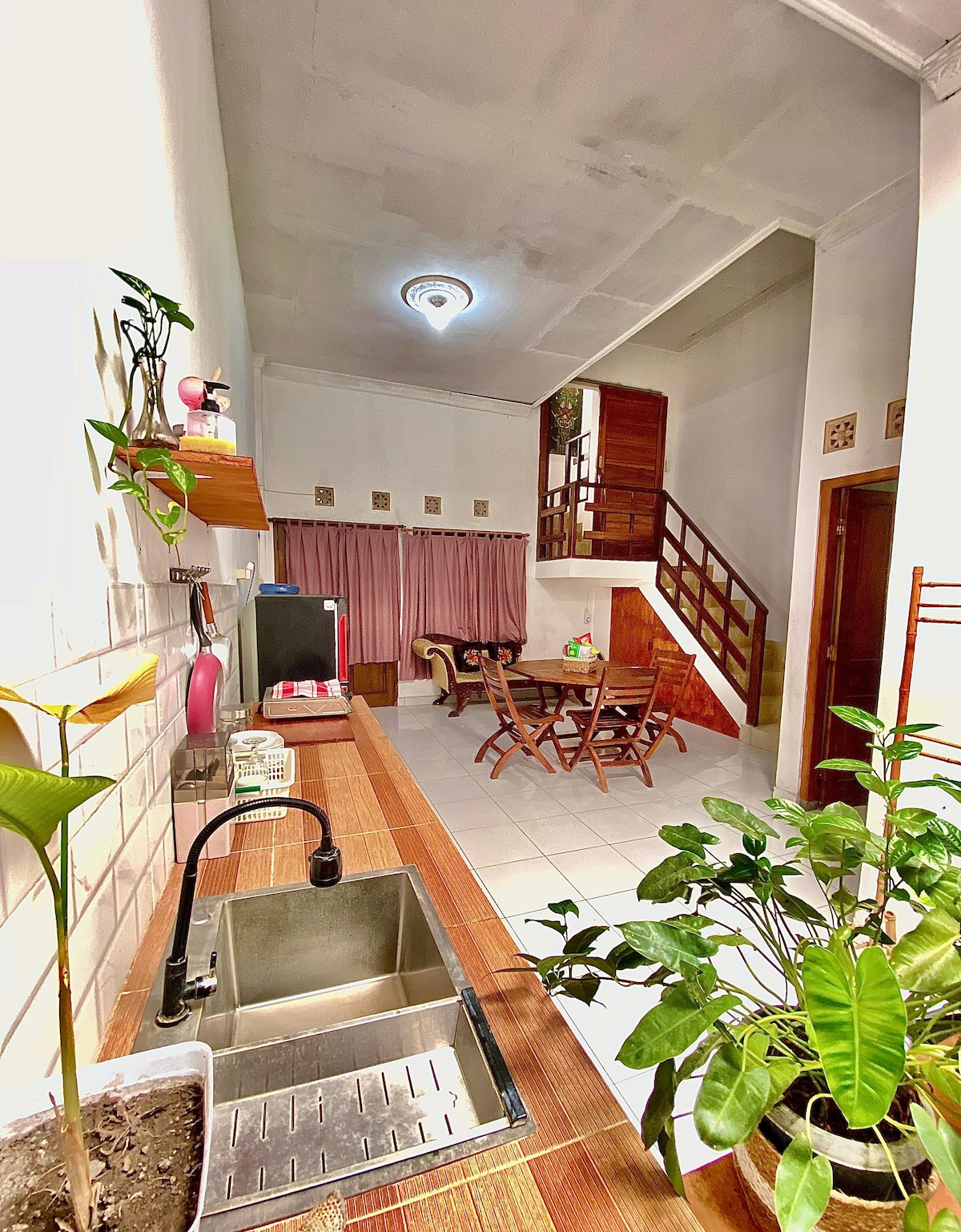 Omah Leren Kwarasan consta de 2 pisos, 2 dormitorios y 2 baños disponibles. Kamar 1 (lantai 1) : 2 kasur individual (120x200) Kamar 2 (lantai 2): 2 kasur doble (160 x 200) Situado en el centro de la ciudad, cerca de minimarkets (indomaret, etc.) y restaurantes. Aunque se encuentra en el centro de la ciudad, el ambiente aquí es bastante tranquilo debido a la entrada a la zona residencial. Para los huéspedes que traen su propio auto, pueden estacionar su auto frente al patio de forma gratuita.