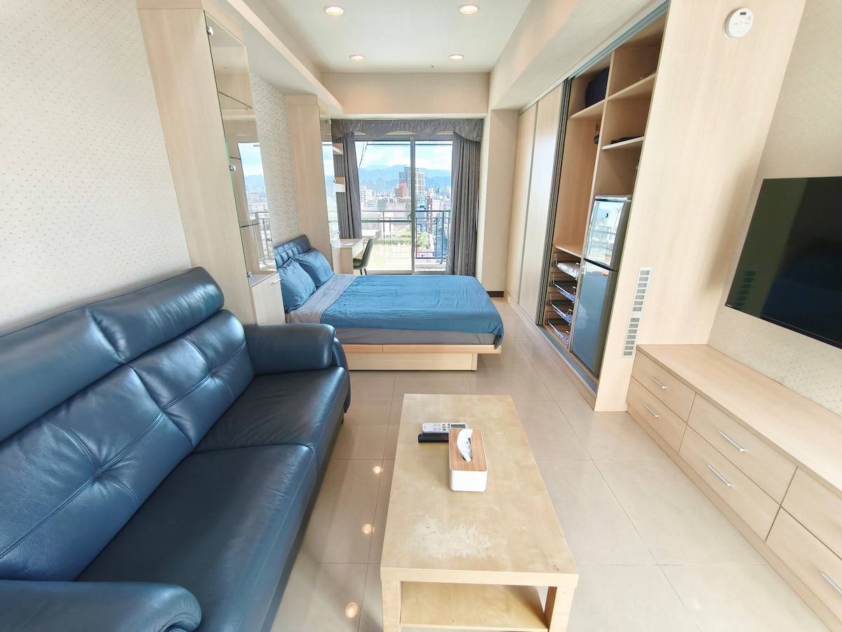 Calificación promedio: 4.8 de 5; 15 evaluacionesCómodo estudio con balcón y vistas a la ciudad sobre el metro