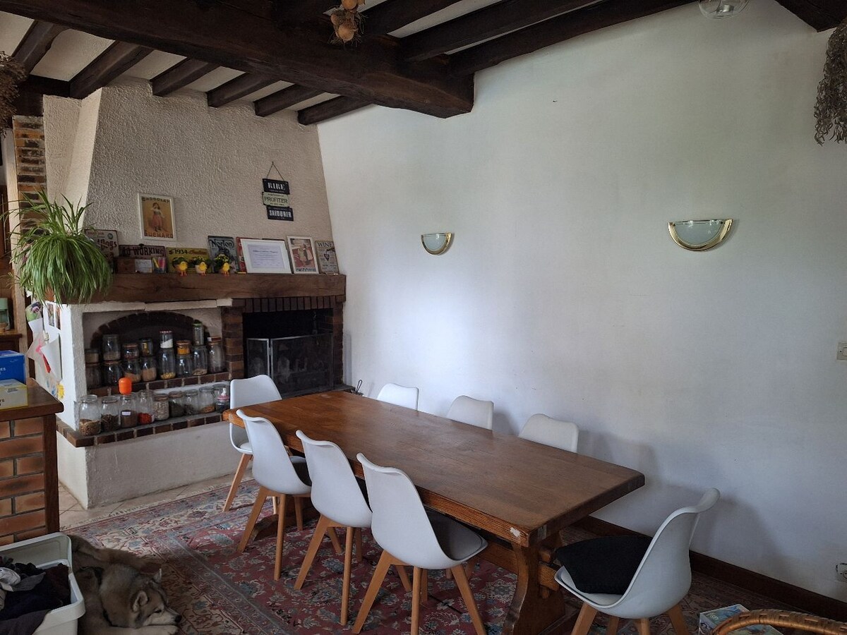Casa tranquila con gran jardín ofrece una estancia relajante para un fin de semana en pareja o con amigos. Esta casa de campo le da la bienvenida en su entorno verde, ubicada en la aldea de la Cadena en el municipio de la Ferte Loupiere en el Yonne (89110) a solo 1 hora y media de París. Sala de estar de 30 m² con chimenea y estufa de leña (leña a discreción) Dos habitaciones independientes con ducha e inodoro, sofá cama, cama supletoria, Cocina equipada con ventanal que da al parque.