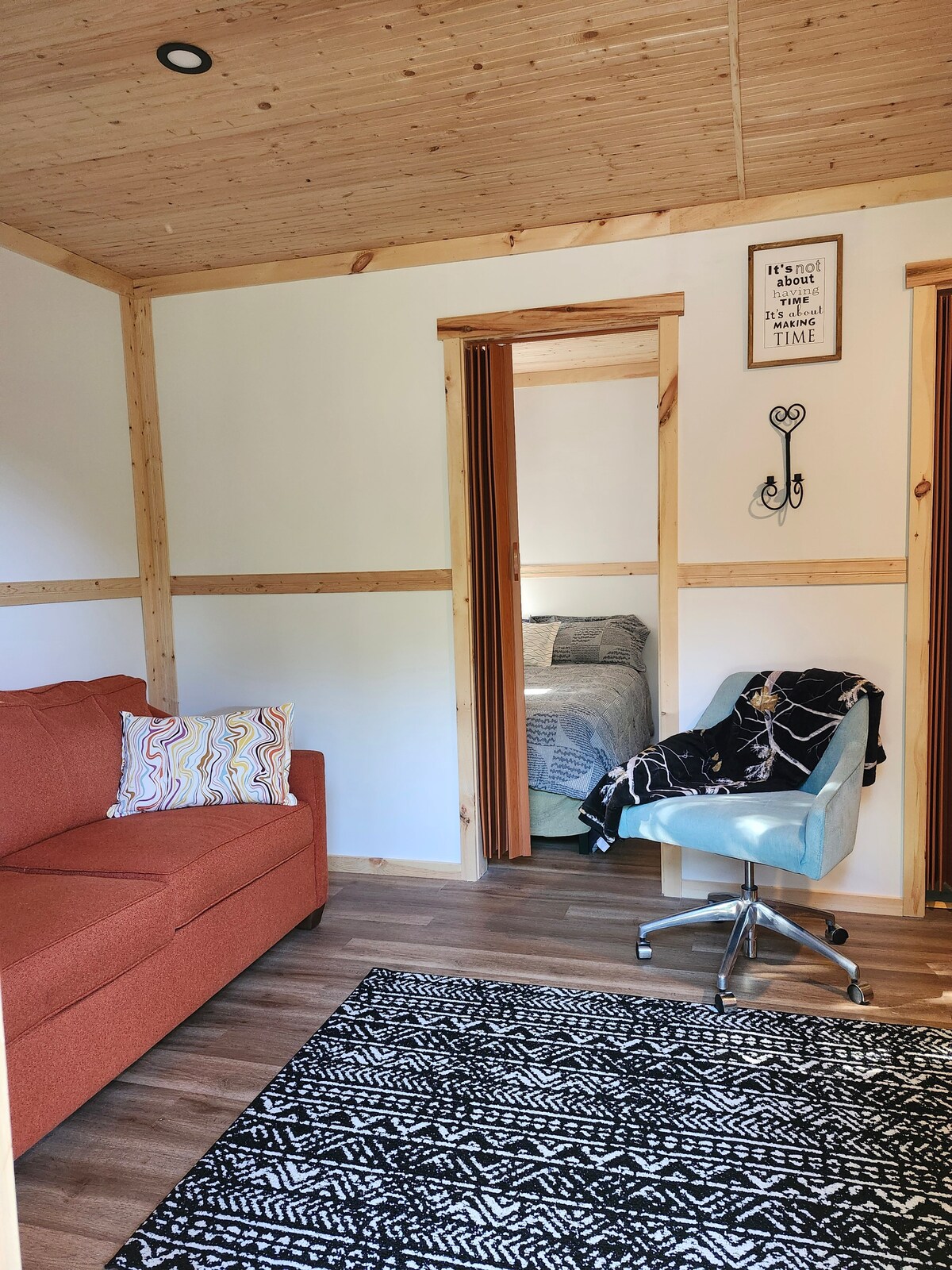 Nuestra familia tiene la suerte de vivir en una pequeña granja aquí mismo en Fredericton, y en los últimos años hemos estado convirtiendo un antiguo granero en un acogedor estudio tipo cabaña para nuestros huéspedes. Se encuentra en nuestra propiedad de 6 acres junto a nuestra casa, y hemos puesto mucho cuidado y amor en renovarla. ¡Realmente esperamos que disfrutes de tu estancia aquí tanto como nosotros disfrutamos dándole vida!