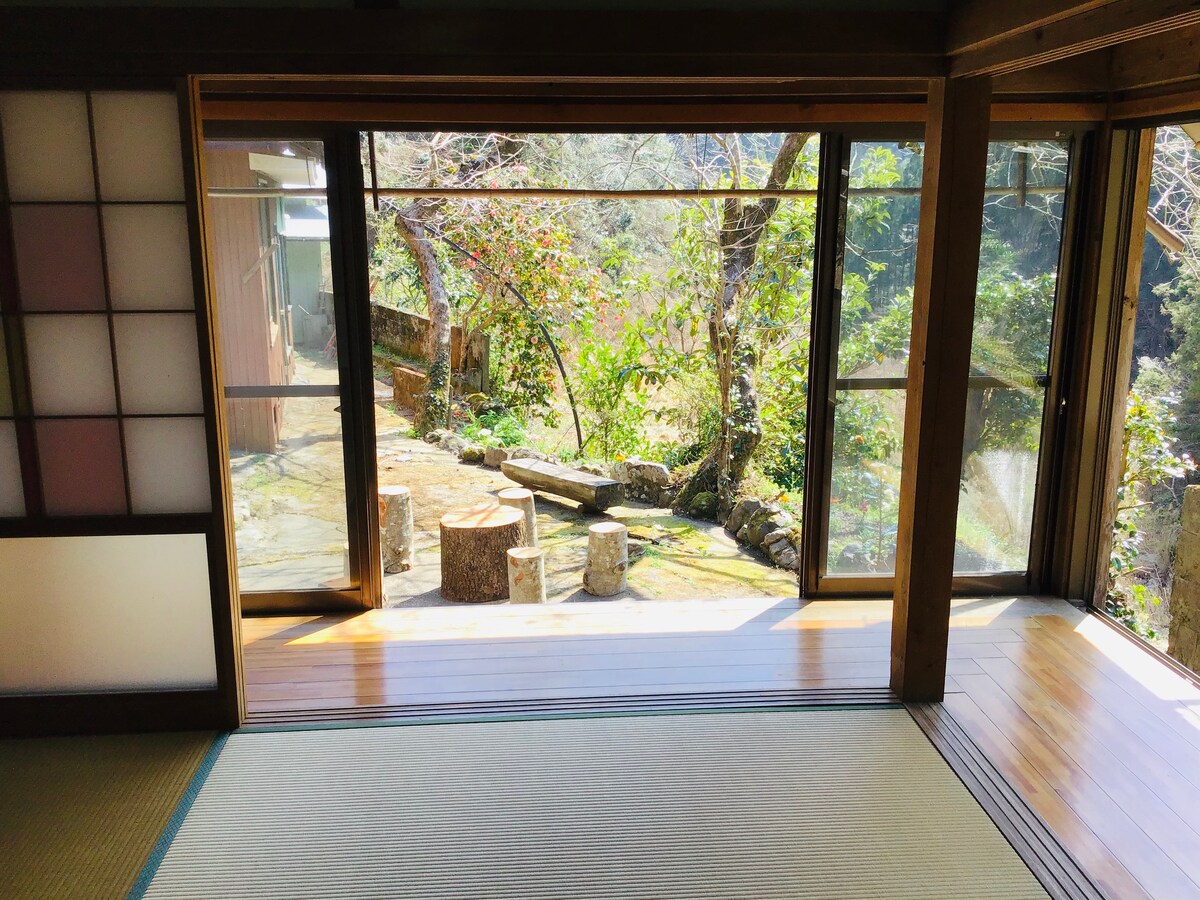 A cozy rental in Shikoku’s mountains, renovated from a café by a quiet river. The calm, open space helps you relax. Enjoy tea on the deck or dinner under the stars. The kitchen is easy to use, with local coffee and handmade tea. Canoeing and rafting are nearby. Enjoy rare Tosa Akaushi beef and award-winning rice. A store is 5 min by car, Montbell Park 10 min, and Kochi or Iya Valley about 60 min. *Note: Bugs may appear. If you dislike insects, it may not suit you—but nature lovers will enjoy it.