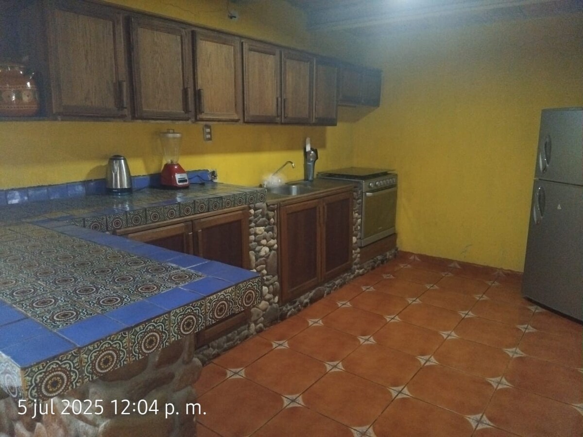 Casa rústica amueblada, con todos los servicios de un hogar y alberca climatizada con calentadoress solares, ubicado en un lugar tranquilo y con vistas al cerro del Muerto, tiene un pequeño cerro en la parte trasera, al cual se pueden subir y desde el que se ve la cd. de Aguascalientes. camina alrededor de la presa del Xoconoxtle que se encuentra a escasos 300 m. Contamos con estacionamiento cerrado y WiFi, para tu comodidad.