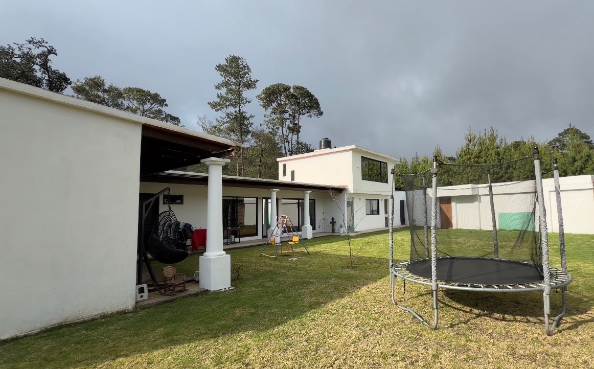 Casa amplia, ideal para relajarse y disfrutar en familia, con espacios cómodos tanto en el interior como en el exterior. Cuenta con área abierta para estacionar autos al frente y en la parte trasera de la casa. Está ubicada en la hermosa Sierra Huasteca Hidalguense. Dispone de dos recámaras, cada una con dos camas matrimoniales, además de una cama matrimonial en la sala. La casa cuenta con todas las amenidades necesarias para una estancia cómoda y placentera.