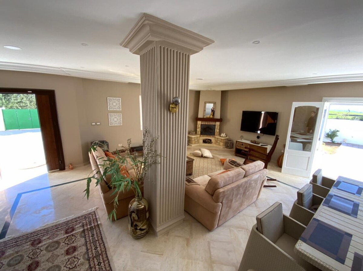 Villa Passion en Mornag? verdadero remanso de paz , un ambiente acogedor, un amplio verde verde hasta donde alcanza la vista... Una villa nueva y de alto standing muy bien amueblada con una superficie de 400 m2 con vistas a la montaña "Djebel Rassas" compuesta por: *una suite principal (dormitorio con terraza, ducha italiana, un dormitorio vestidor) *un dormitorio con un gran vestidor *un dormitorio con vestidor y terraza *cuarto de baño + una ducha a la italiana *Baño para huéspedes