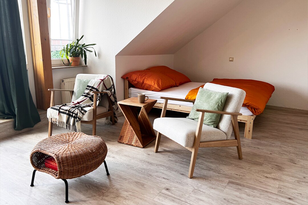 Lutherstadt Wittenberg conmueve, impresiona y entusiasma. Comience su estancia en un ático reformado con encanto, en el corazón del casco antiguo de la ciudad de Lutherstadt Wittenberg, entre la histórica plaza del mercado y la casa de Lutero. El apartamento de 2 habitaciones se encuentra en el tercer planta con dormitorio que da a la tranquila calle central, tiene 78 metros cuadrados, calefacción por suelo radiante, cama doble y la posibilidad de añadir 4 camas en el salón con 2 sofás cama.
