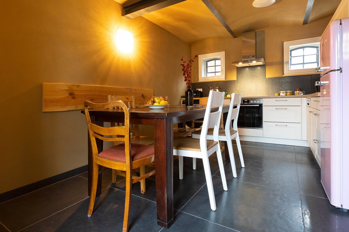 Para su estancia, ofrecemos un espacioso apartamento de vacaciones de 1 habitación con cocina y baño con ducha en la planta baja + un pequeño «refugio» de 1 habitación con pasillo/WC/ y mini cocina en una casa de más de cien años de antigüedad. La casa para no fumadores está amueblada de forma individual y restaurada con cariño y atención al detalle. Se alojará en un espacioso apartamento de una habitación en la planta baja con cocina y baño con ducha, además de un refugio adicional: un pequeño apartamento de una habitación en la planta baja con cocina americana y aseo.