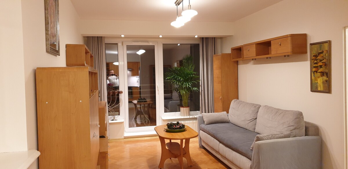 A two-room apartment with a balcony in a quiet and green Przemyslaw housing estate. The apartment is located on the fourth floor with an elevator. It consists of a living room with a balcony with an open kitchen, a bedroom, a bathroom with a toilet and a hall. Apartment is fully furnished and equipped. There are plenty of free parking spaces in front of the block. The estate is located near the M1 shopping center. Close to the green areas of the Olszak Pond and Malta.