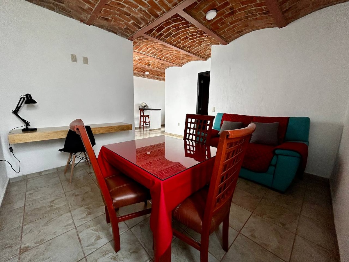 Hermoso apartamento en planta alta, -Zona tranquila en Tlaquepaque Centro -5 minutos del Parían -20 minutos de Aeropuerto -5 min a Plaza Forum -Bodega Aurrera a 4 cuadras. Disfruta de un espacio creado para una estancia placentera -1 Dormitorio -Disney+ y Star+ Gratis -1 Cama matrimonial -1 Sofá muy confortable -Cocina totalmente equipada -Barra desayunador, comedor, internet , Smart TV y baño completo.