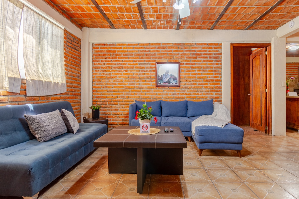 Departamento perfecto para visitar la Feria en grupo. A 10 minutos caminando al Jardín de San Marcos 💃🏻 - Cocina equipada - 2 Recámaras, una con cama matrimonial y otra con 2 individuales - Sala con sofá Cama - Estacionamiento Ubicado en 3er piso. En la 2a planta viven los dueños, lo que permite atención personalizada. En planta baja hay mini súper con botanas ricas y lo que sea que necesites. Cerca encuentras varias opciones para comida local. Mira nuestras reseñas 😃 Facturamos.