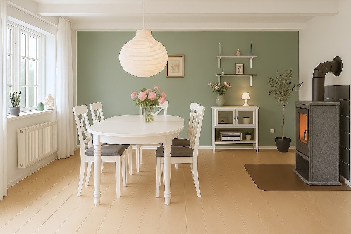 Acogedor y moderno apartamento de 35 m2 en nuestra casa de ciudad con una ubicación perfecta, en el centro del casco antiguo de Ebeltoft. Aquí la mayoría de las cosas están a poca distancia: la fábrica de malta, restaurantes, tiendas, museos, supermercados, el puerto y la playa. El jardín es un pequeño oasis exuberante con varios rincones acogedores, una terraza cubierta y vistas al mar. Disfrute de una bebida en la terraza y de la puesta de sol sobre Ebeltoft Vig. En la calle se puede aparcar durante 15 minutos para subir y bajar. Aparcamiento gratuito a 75 m. Estaciones de carga eléctrica a 100 m. Se puede contratar la limpieza final.