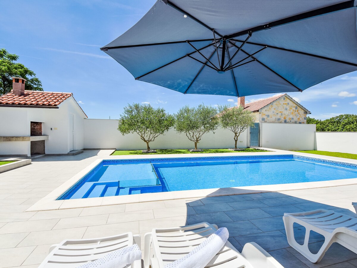 Authentic mediteran stone house with big heated Pool (30m2 with jacuzzi bench) in village near Zadar. Total area of land is 300m2 with private parking, garden,big heated pool,6 wooden sunbed and two big terasses with lounge .For fun there is billiard,table tenis,goal for fotball, picado. House is located in small village away from city noise. It has a beautiful open view on the nature and mauntines. You can enjoj at complete privacy. House is souranden by fields and you can see domestic animals