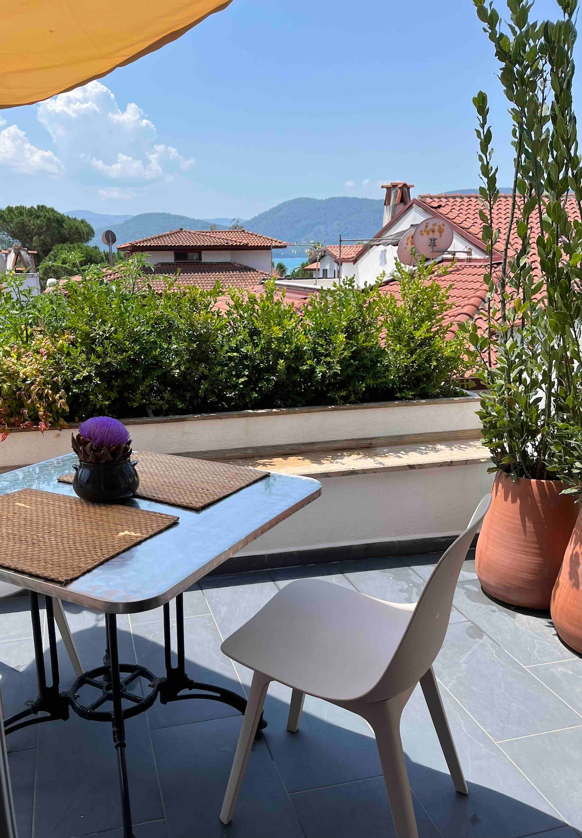 Acogedora casa en la azotea de Akyaka Karanfil Sokak con terraza