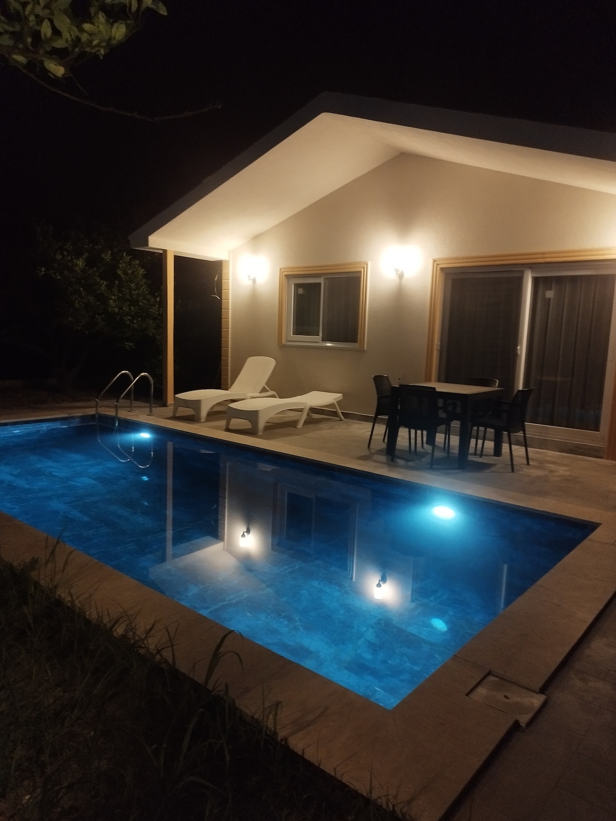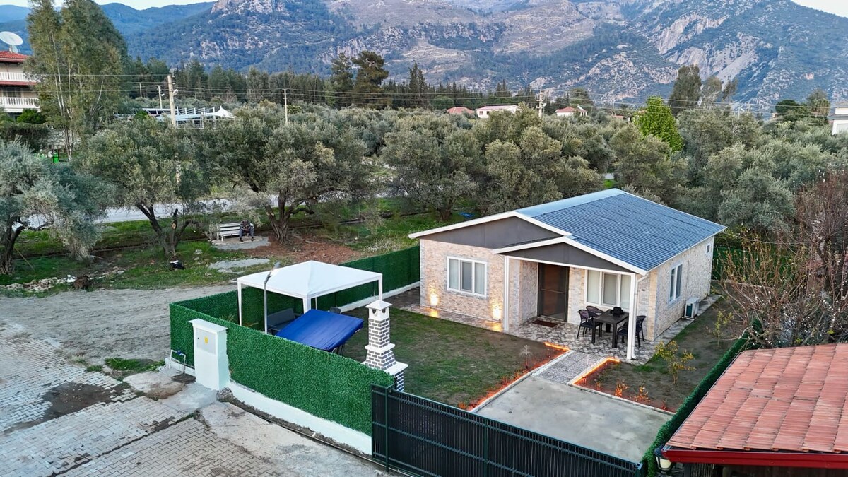 En la naturaleza. Cerca de Dalyan. Una casa con un jardín independiente y una piscina privada. Consta de 2 dormitorios, una cocina abierta y un baño. Nuestra casa, de 75 metros cuadrados, tiene aire acondicionado en todas las habitaciones. Tenemos una terraza, un chezlon y una mesa para que comas en el jardín. Hay internet, TV, lavadora, lavavajillas... Es una casa limpia, ordenada y en buen estado y ha entrado en funcionamiento este año. Hay estacionamiento gratuito.